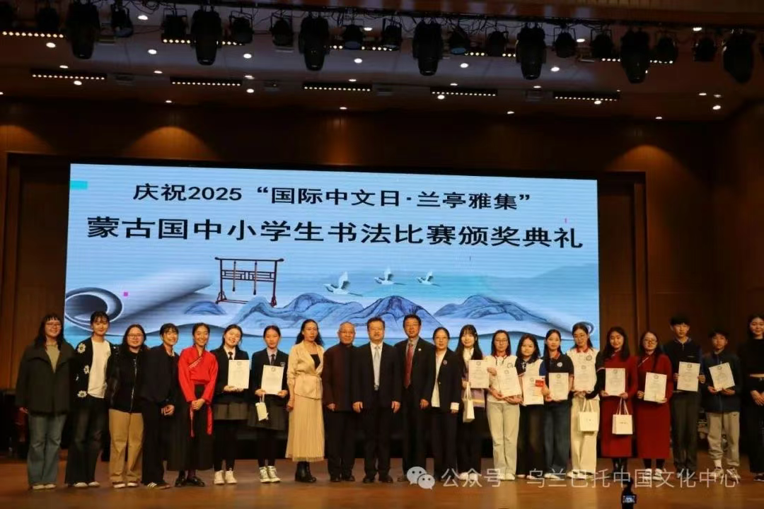 李峙在致辞中表示,中蒙是山水相连的好邻居、好伙伴。蒙古国越来越多年轻人把学习中文看作个人成长和通往未来的阶梯,并为推动两国共同发展和友谊贡献智慧的火花。希望通过举办国际中文日和兰亭雅集活动,以中文为媒,以文化为桥,让蒙古国更多的朋友们与世界人民一道深入了解中国文化,感受彼此心灵的契合。 中国著名歌手乌兰图雅向观众激情演唱了《凤凰飞》《套马杆》《小草》《站在草原望北京》《我和草原有个约定》等11首经典中文歌曲并多次走下舞台,与观众互动,共同放歌,现场气氛热烈、精彩不断。演出结束后,热情的观众久久不愿离去,争相与乌兰图雅合影留念。乌兰图雅说:“希望用歌声架起中蒙人民友好的桥梁。也欢迎蒙古国的朋友们多到中国走一走,加强两国民众的相互了解。” 本次活动由中国文化和旅游部、中国驻蒙古国大使馆主办,乌兰巴托中国文化中心、蒙古国立大学孔子学院承办,是全球庆祝国际中文日和兰亭雅集活动的一部分。演出前,两家单位还联合在爱乐乐团前厅和演出厅举办了2025“国际中文日·兰亭雅集”中国书法展、书法体验活动、乌兰巴托中小学书法比赛颁奖仪式,组织蒙古国中小学生观看了视频《中国书法5000年的光辉历史》。来自蒙古国多所中学的汉语桥比赛获奖学生在舞台上展示了他们的中文才艺。 |