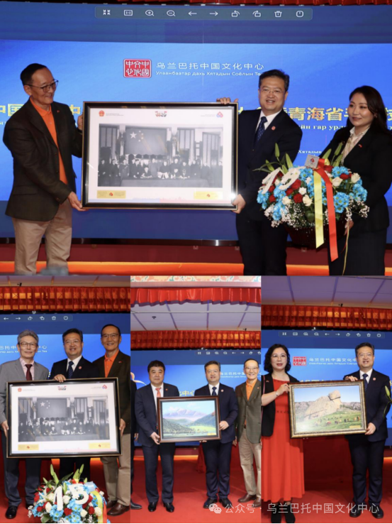 青海省文化和旅游厅副厅长常红安向现场嘉宾推介青海省优质旅游资源和旅游项目,并介绍了“青海传统手工技艺展”和“山宗水源 大美青海”图片展主要展品。 巴特苏赫、文化体育旅游和青年部艺术司司长斯日古楞在致辞中回顾了蒙中友好交往历史及近年来两国文化交流的重要时刻,表示文化是增进相互了解的重要纽带,乌兰巴托中国文化中心为推动蒙中友好发挥了重要作用,希望蒙中进一步挖掘文化交流潜力,推动双边合作,加强民间交往。
