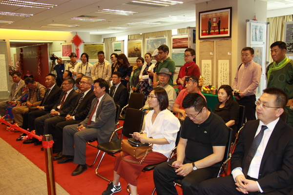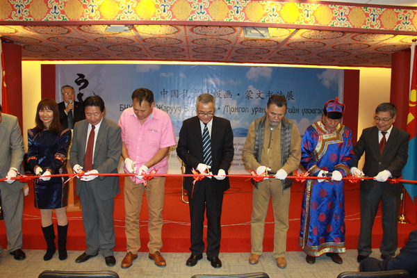 中国驻蒙古大使馆公使衔参赞杨庆东,蒙古国教育文化科学与体育部文化政策协调司司长岗图木尔、乌兰巴托中国文化中心副主任哈斯巴根、蒙古国美术家协会副主席策格米德及扎鲁特旗有关领导共同出席、致辞并为开幕式剪彩。蒙古国文化艺术界、美术界、书法艺术工作者及社会各界人士共100多人参加开幕式并观看本届展览。