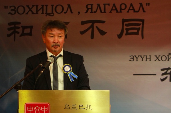蒙古国美术协会主席铁木尔巴特尔致辞 开幕式上蒙古国美术协会主席铁木尔巴特尔先生、中国著名书法家及当代诗人蔡祥麟先生、日本著名书法家小林芙蓉女士等艺术家致辞,都表示通过艺术作品不仅能表达美的感受,同时增进各国之间的交流和友谊,衷心希望“和而不同·东北亚书画汇”对亚洲乃至对世界和平作出更大贡献,祝愿东北亚人民共建共享一个和平安康的环境。 本次“和而不同·东北亚书画汇”蒙古国巡展,展出了来自中国、蒙古、日本、朝鲜和韩国的书画精品近百件。