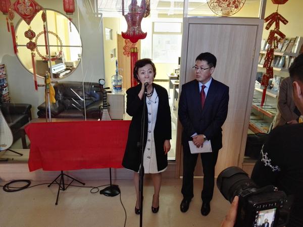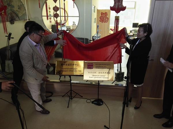 启用仪式上,李薇参赞代表中国大使馆向音乐舞蹈学院赠送购置中国乐器的援助经费4万元人民币,并与蒙古国音乐舞蹈学院院长额尔登巴特一同为中国大使馆设立的“蒙中友谊艺术中心”和乌兰巴托中国文化中心和音乐舞蹈联合开设的“东方之风:中国文化艺术课堂”揭牌。