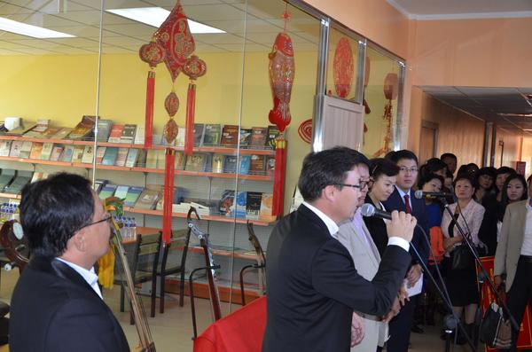 蒙古国音乐舞蹈学院院长额尔登巴特致辞中向一直以来给予大力支持的中国大使馆和乌兰巴托中国文化中心表示衷心感谢,并表示,今后进一步加大中国文化艺术的教学内容和交流范围,培养更多的优秀学员,为增进两国人民特别是青少年之间的相互了解做出积极努力。