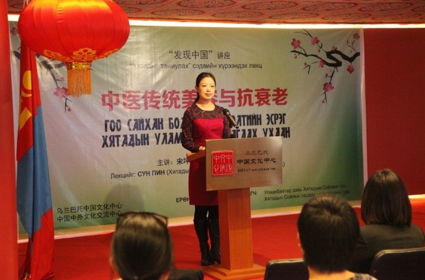 乌兰巴托中国文化中心举办“发现中国:中医养生”讲座10月14日,由乌兰巴托中国文化中心和中外文化交流中心主办的 “发现中国讲座:中国传统美容与抗衰老”专题讲座在乌兰巴托中国文化中心多功能厅成功举行。蒙古国教育文化科学体育部官员以及官方和民间人士、新闻媒体代表等到现场聆听讲座。 乌兰巴托中国文化中心副主任哈斯致开幕词,表示中国中医学历史悠久,植根于中华文化的土壤,是中华文化的重要组成部分。希望此次讲座将能为大家带来了解中国文化的广阔视野,能感受到中华医学的神奇和奥妙。 来自中国中医科学院的博士、教授宋坪女士通过PPT展示和现场体验的方法,首先简明扼要介绍中华传统中医几千年发展历程之后,从运动、饮食、艾灸、拔罐、推拿、按摩等六个方面生动地讲述了中医传统疗法的神奇功效。 讲座理论和实用相结合,包含太极拳、八段锦等传统功法、饮食方法、按摩方法、针灸治疗法(毫针、艾灸)等 ,现场指点体验,中医养生对美容、抗衰老、健康长寿的神奇效用,极大地吸引了听众的浓厚兴趣。短短两个小时的讲座远远未能满足听众的好奇心,大家认真聆听,仔细笔录,有的抱着婴儿来参加,讲座赢得了全场的热烈掌声。讲座结束后很多女性听众主动与宋教授交流互动,纷纷表示讲座非常生动,具有实用价值,参加此次讲座受益匪浅,希望乌兰巴托中国文化中心今后多举办类此的讲座。 此次讲座是“发现中国:香港电影”专题讲座后,乌兰巴托中国文化中心今年举办的第二次“发现中国”讲座。 |