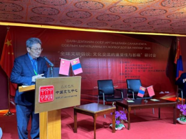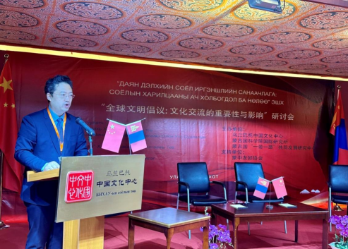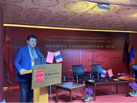“全球文明倡议:文化交流的重要性与影响”研讨会在蒙古国成功举办9月14日,由乌兰巴托中国文化中心、蒙古国科学院国际研究所、蒙古国“一带一路”共同发展研究中心共同举办的“全球文明倡议:文化交流的重要性与影响”研讨会在乌兰巴托中国文化中心隆重举办。 中国驻蒙古国大使馆参赞兼乌兰巴托中国文化中心主任李峙、蒙古国文化部战略发展政策规划局局长巴音卓勒、蒙古国科学院国际研究所所长佐乐保、“一带一路”共同发展研究中心主任朝伦及中蒙两国专家学者、媒体记者近50人出席了研讨会。